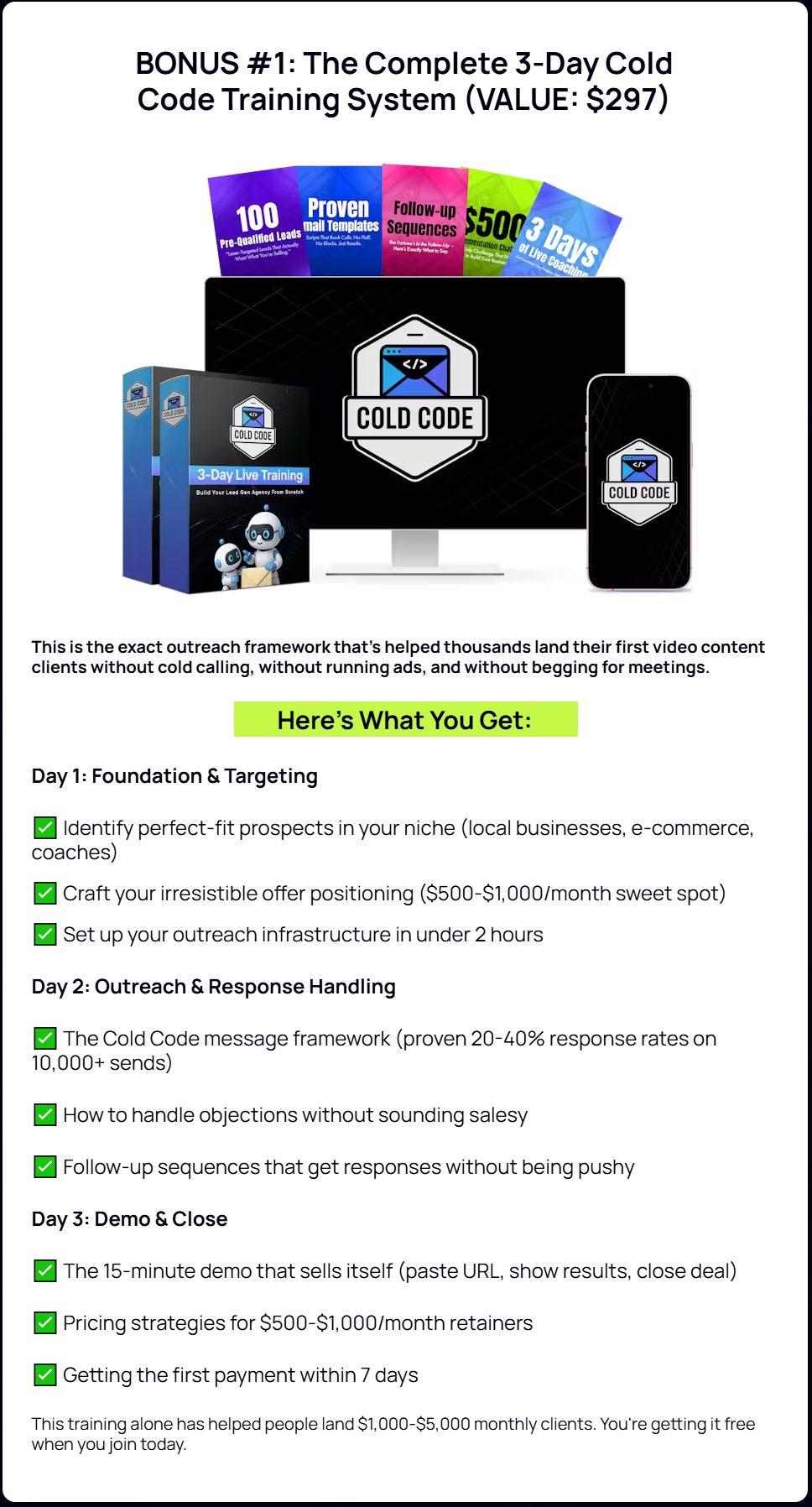 The best part? It’s built from the ground up for people who want to sell recurring video services. You can confidently charge $500 to $1,000 per month per client in retainers because you’re delivering consistent, on-brand short-form videos without needing a big team or spending hours every week.