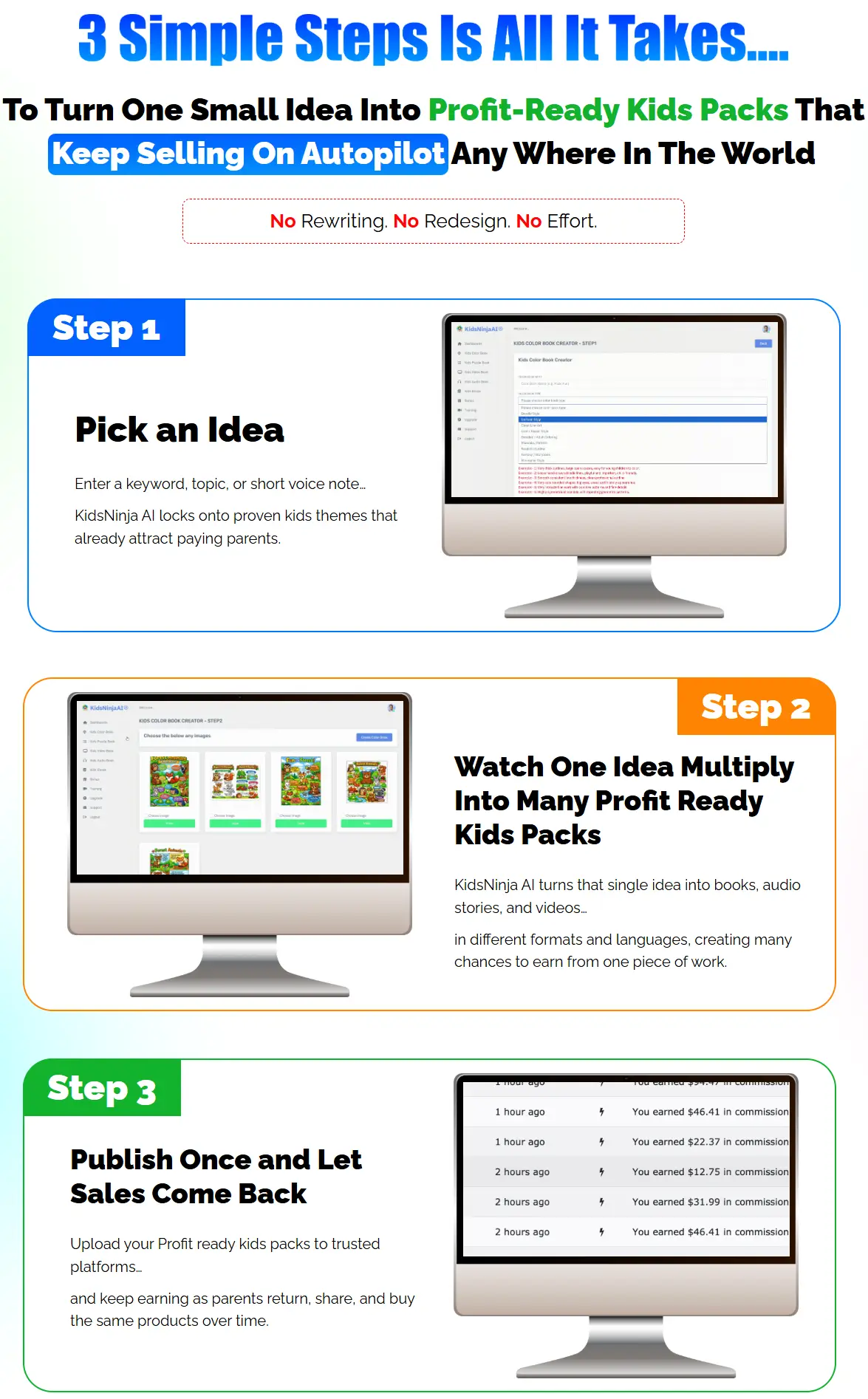 In short, KidsNinja AI is not just a kids’ book creator—it’s a complete kids content factory that transforms small ideas into long-term digital assets that can be sold again and again, all without monthly fees or complicated tools.