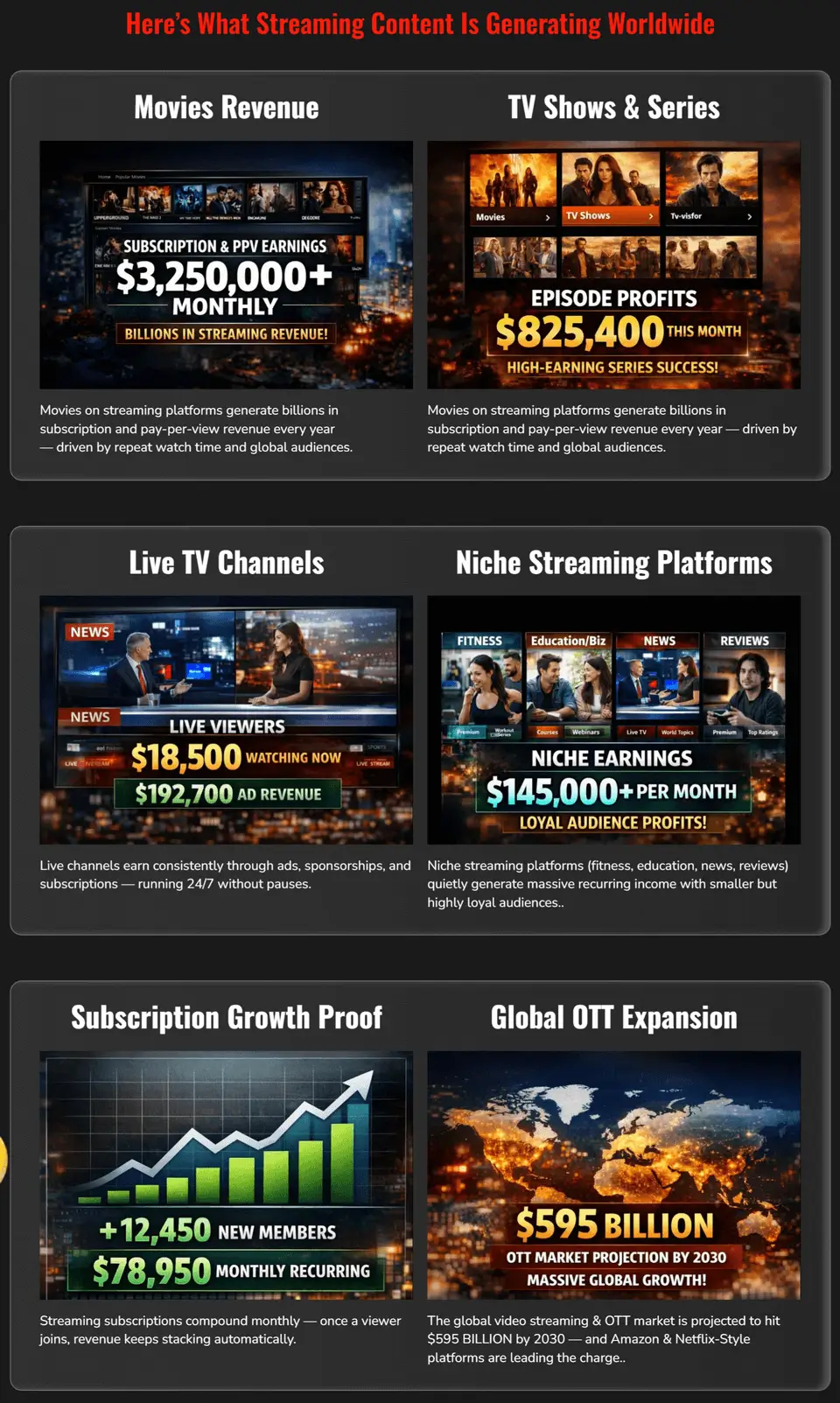 This is the “we set it up for you” offer. It includes preloaded voices, scripts, projects, and help launching monetization.