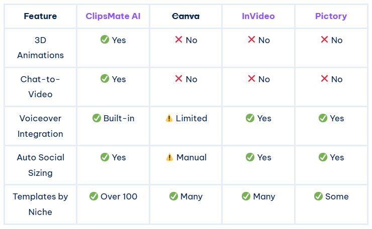 Let me be real — I’ve tried a lot of tools like Canva, Lumen5, and InVideo. They’re great, but ClipsMate AI does things those tools can’t.